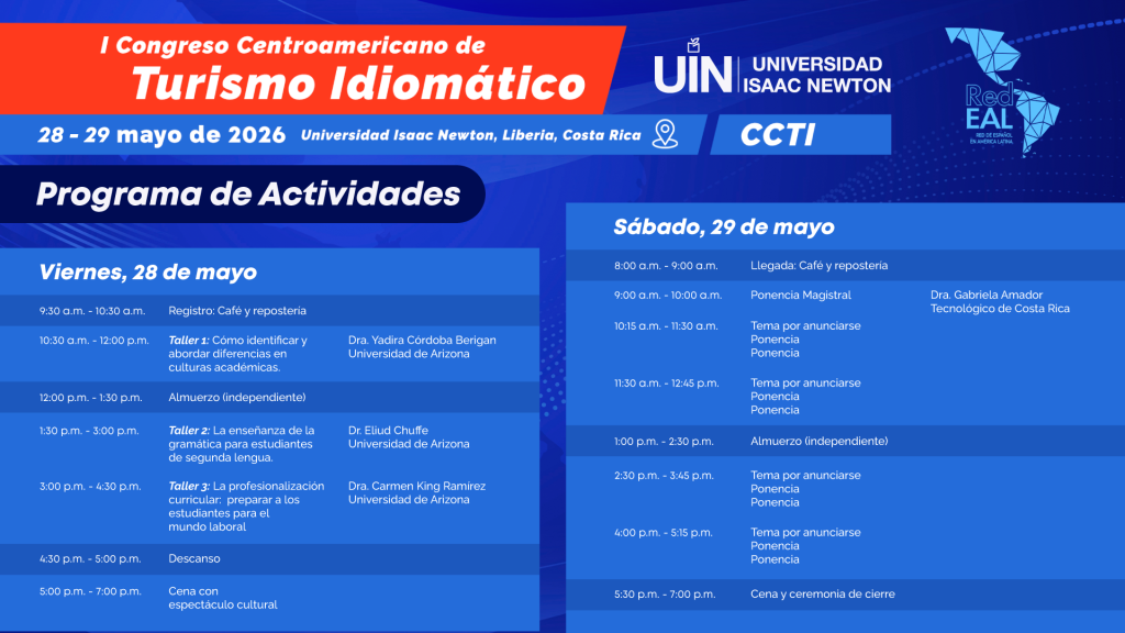 El primer congreso centroamericano para el turismo idiomático invita a docentes e investigadores a compartir métodos pedagógicos, diseño curricular y programación académica que respondan a las necesidades de estudiantes extranjeros que estudian en los países de Centroamérica y el Caribe.