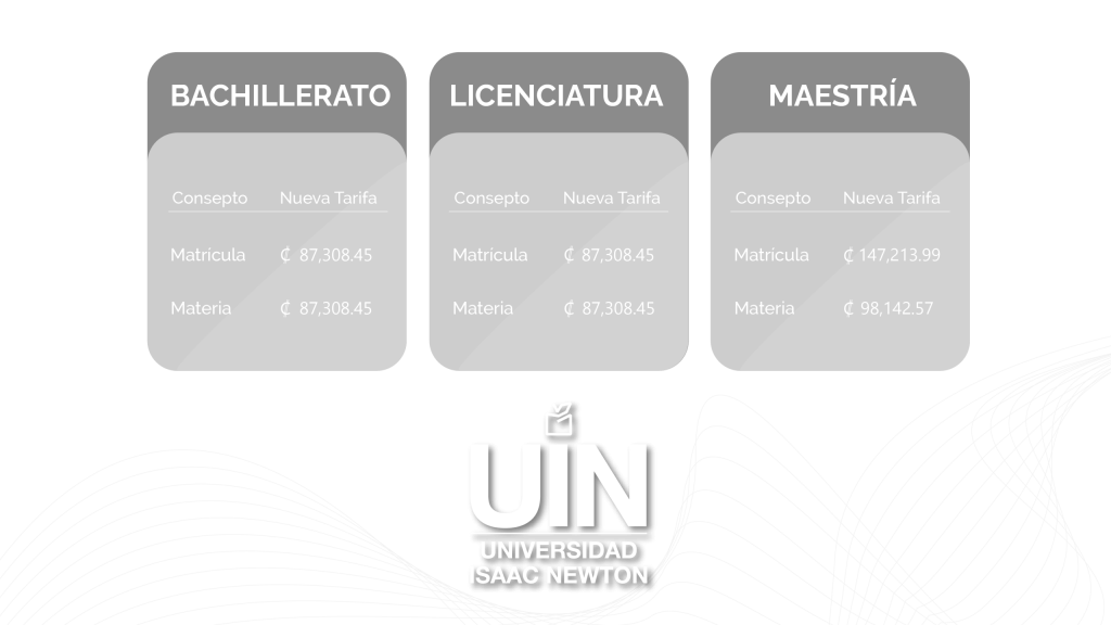 aprobaron las tarifas para la Universidad Isaac Newton, de la siguiente manera: